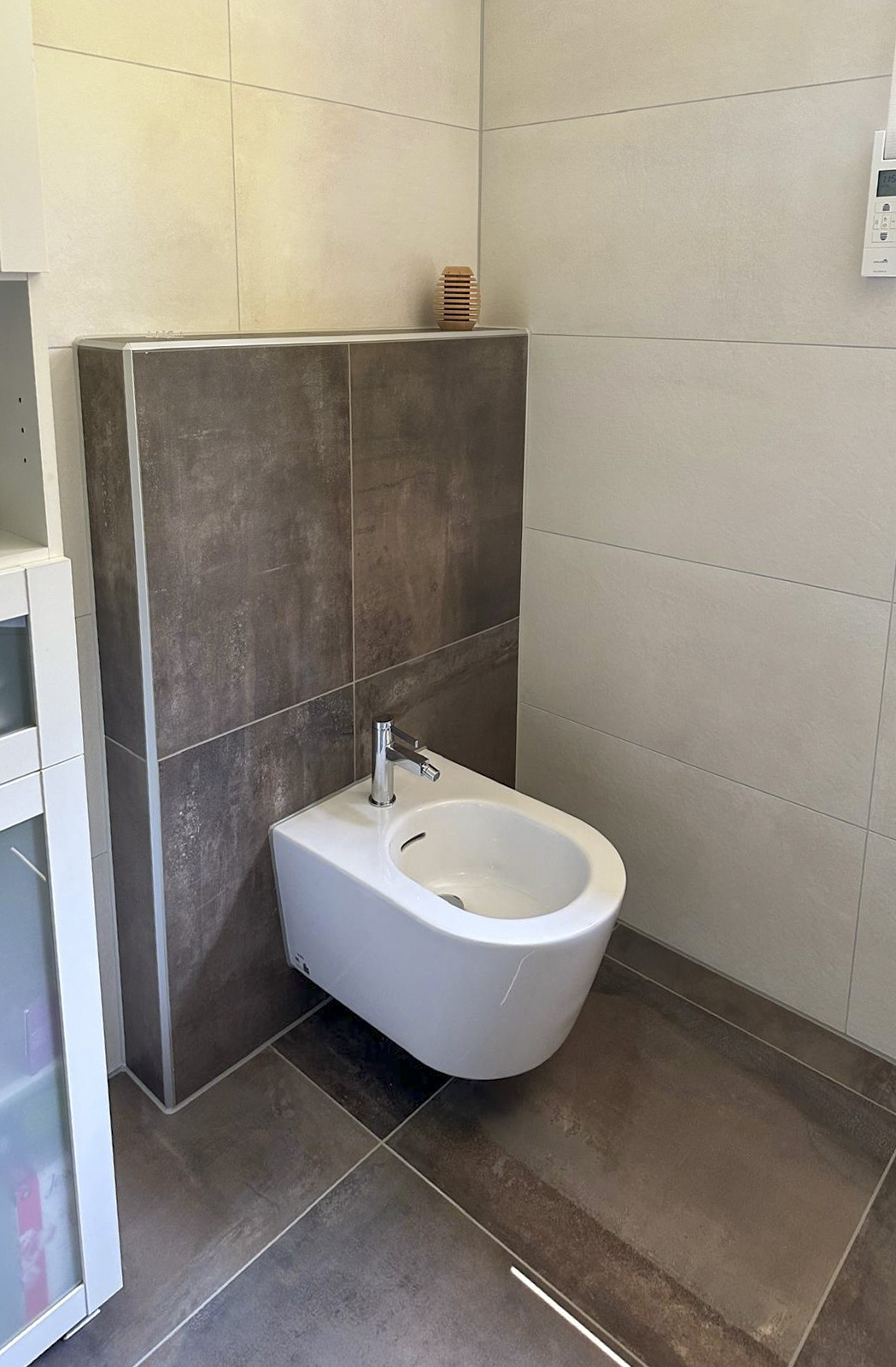 Dusch-WC & Bidet: Mit einem hochwertigen Toto-Dusch-WC sowie zusätzlichem Bidet wurde das Badezimmer technisch auf den neuesten Stand gebracht. Hier verbinden sich Hygiene, Komfort und Nachhaltigkeit.