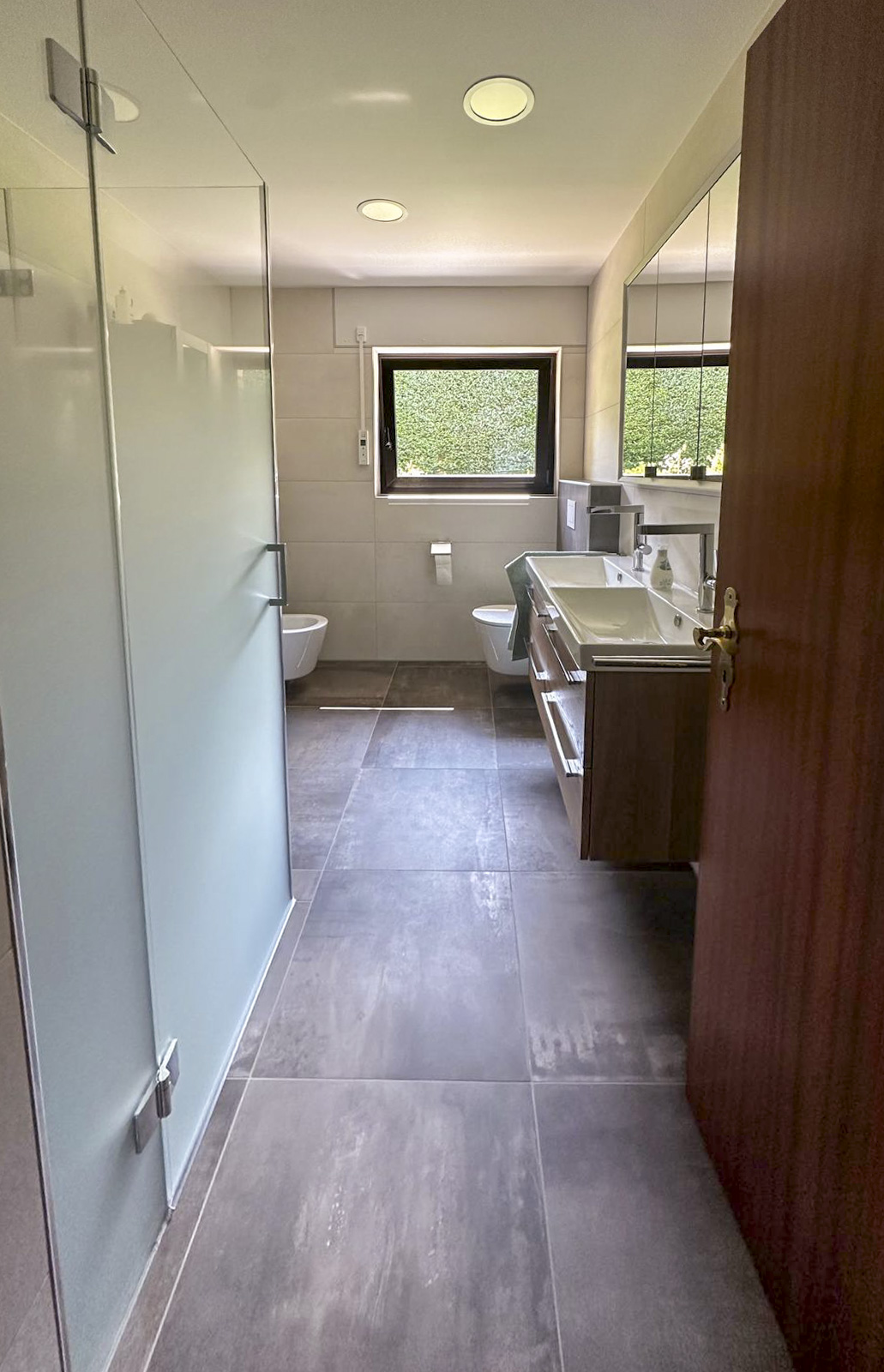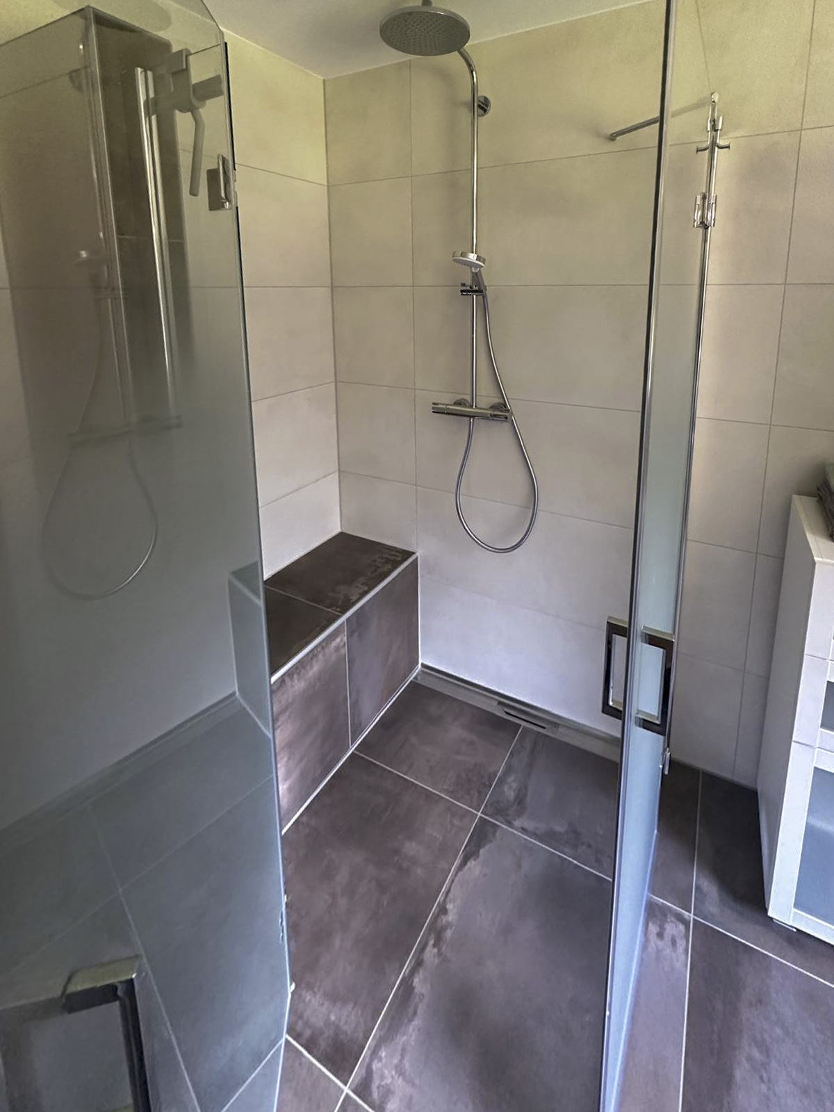 In Wilnsdorf durften wir ein komplettes Badezimmer in einem Altbau grundlegend modernisieren und dabei besonderen Wert auf Barrierefreiheit, Komfort und modernes Design legen. Die Sanierung umfasste die vollständige Erneuerung aller Sanitärobjekte sowie eine durchdachte Raumgestaltung, die den Alltag erleichtert und zugleich ästhetische Akzente setzt.