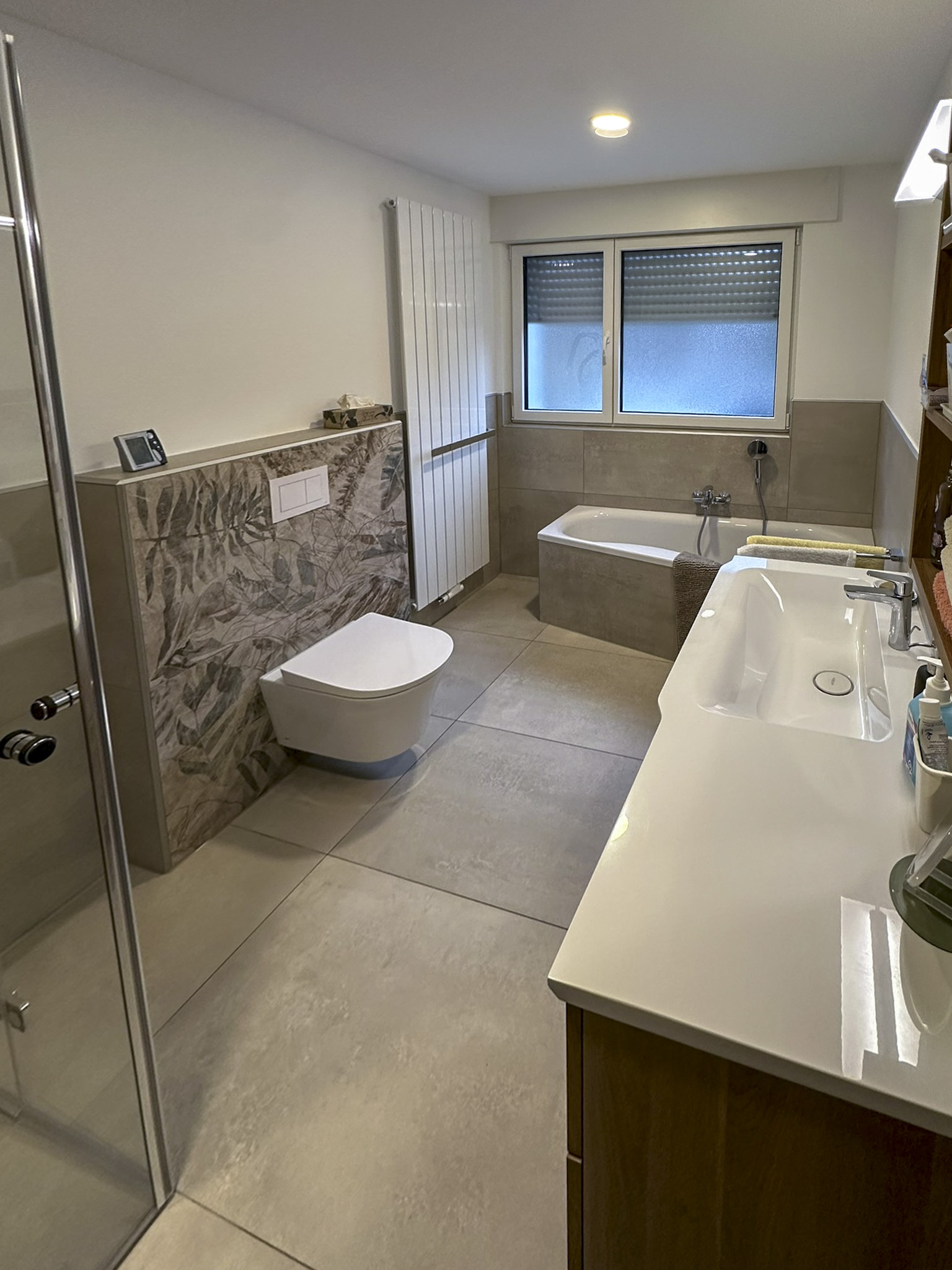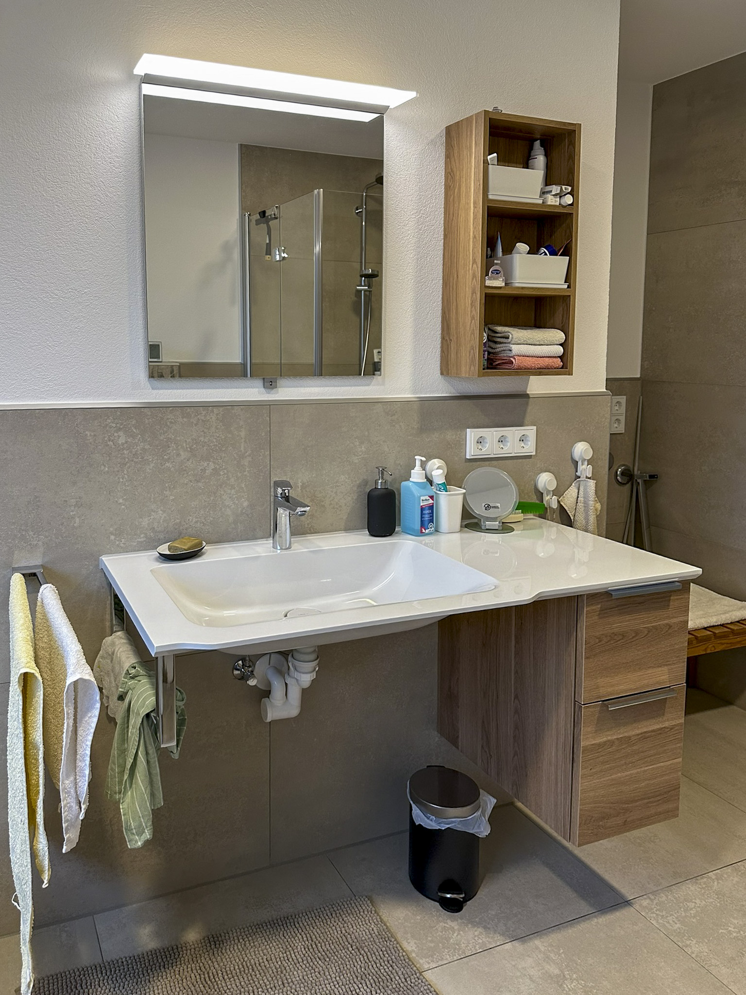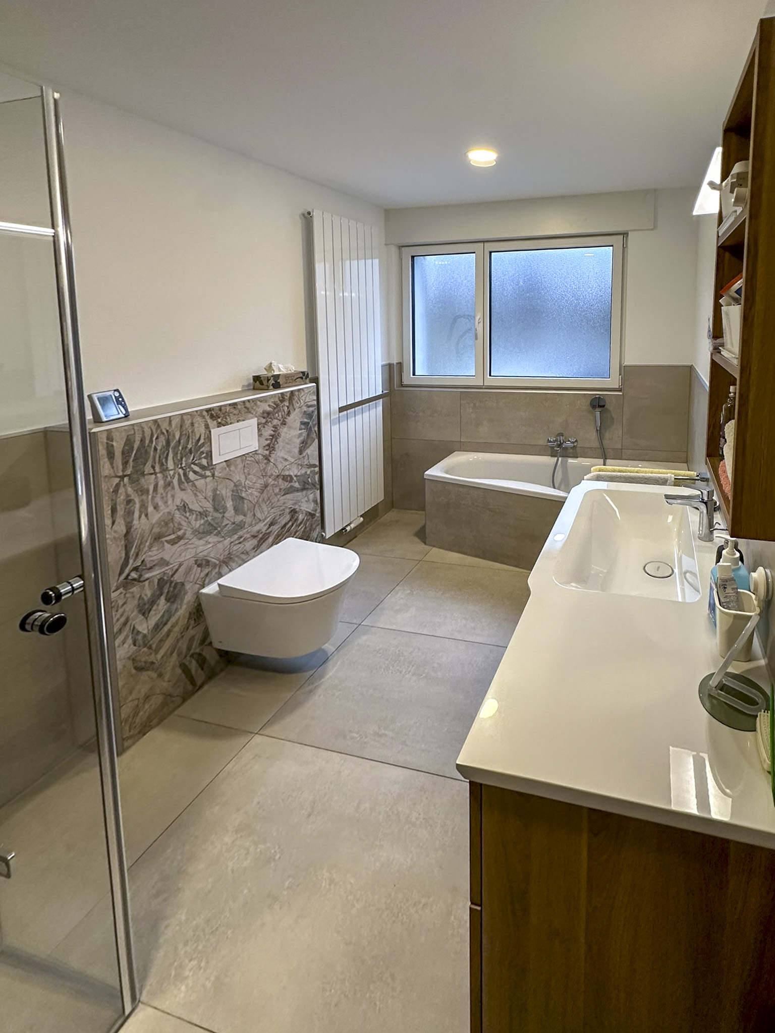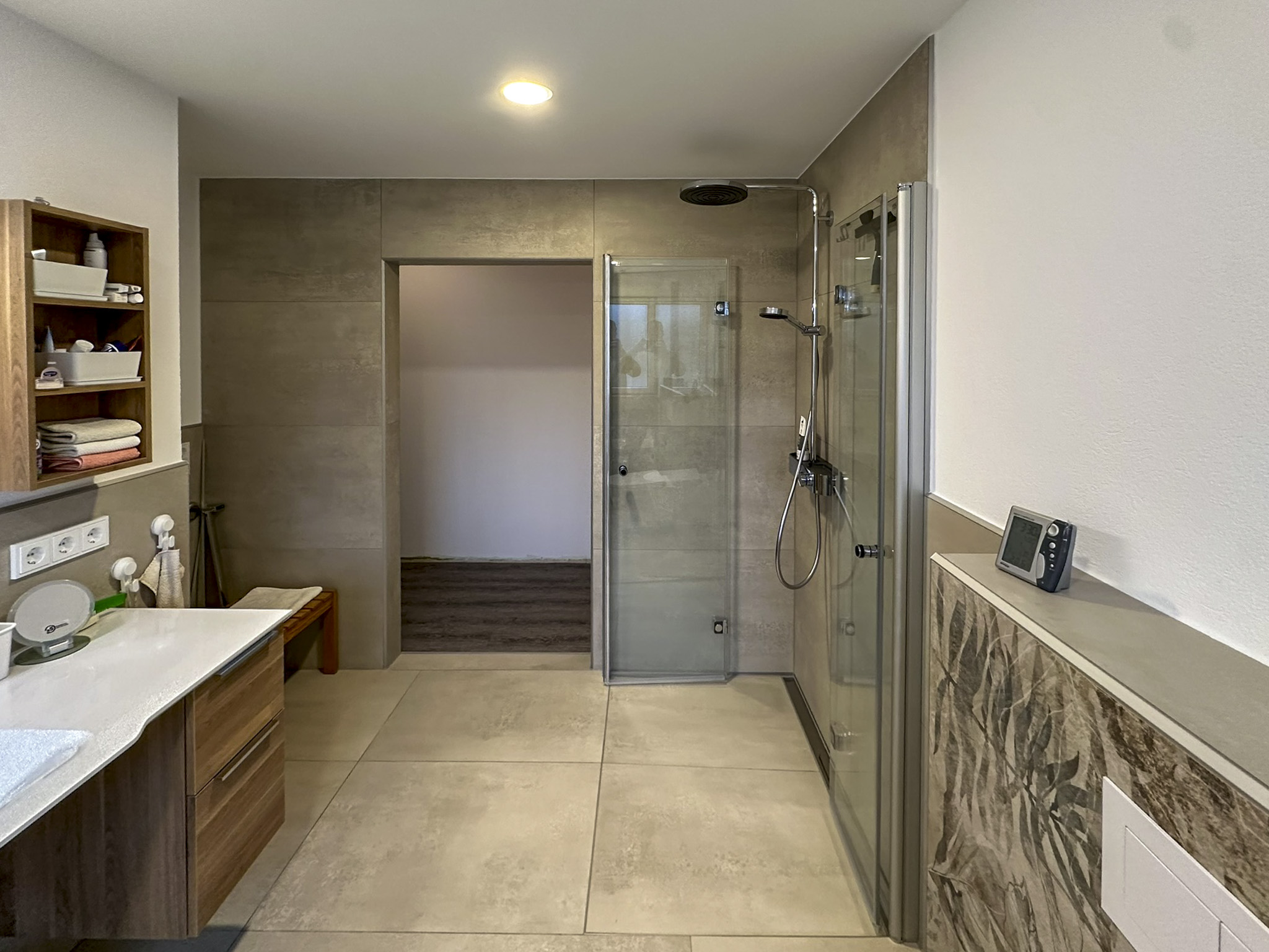 Das Ergebnis ist ein zeitloses, modernes Badezimmer, das nicht nur optisch überzeugt, sondern auch durch seine Barrierefreiheit zukunftssicher geplant wurde.